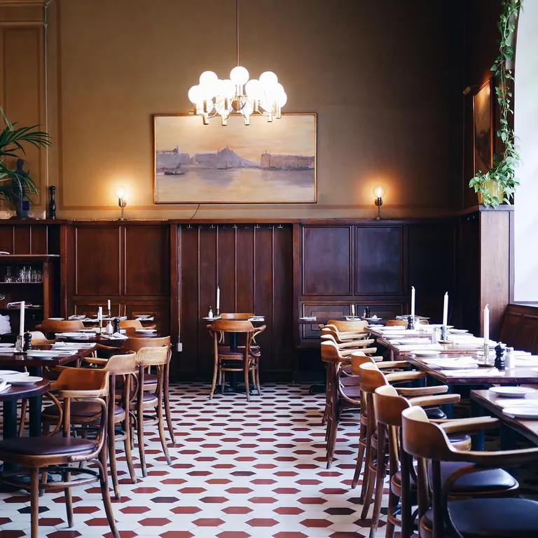 "alt": "Restaurants in Stockholm. The main dining room at restaurant Pelikan in Stockholm.",