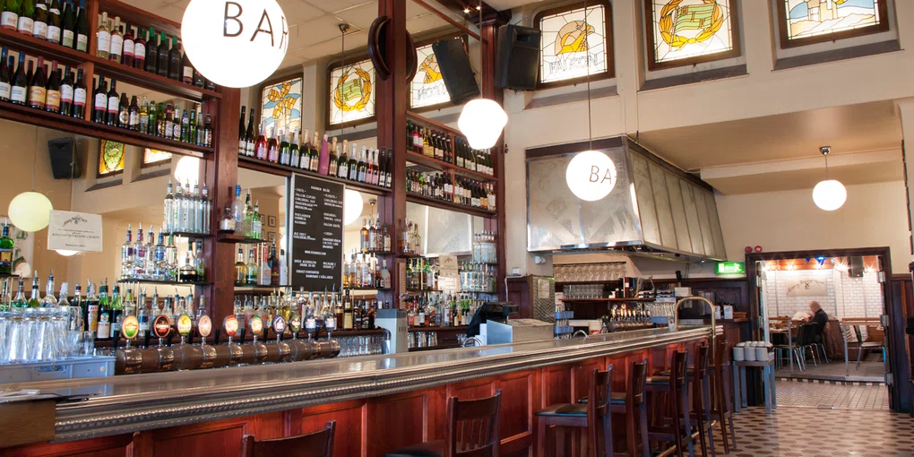 "title": "Kvarnen, a classic bar on Södermalm in Stockholm. The mirrored wall is lined with wine bottles, liquors, whiskey and much more. There are several beers and ales on tap, ranging from light lager to dark stout and porter. From fights over toasts in the mid",
