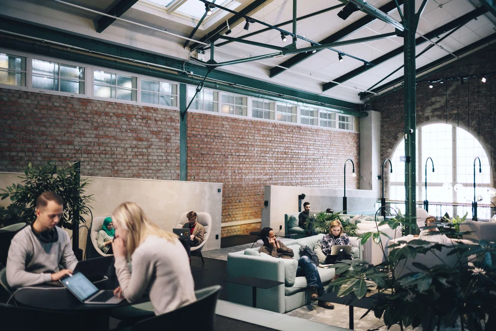 "embeddedTextCaption": "People sit working at a co-working space in Stockholm",