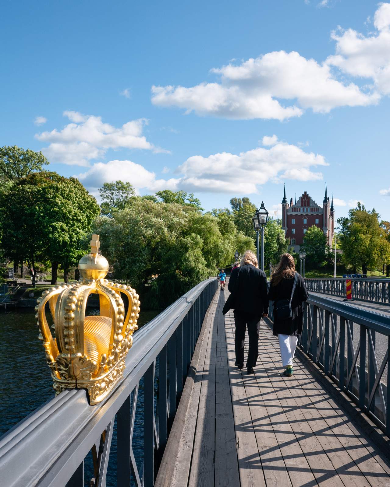 "alt": "Attractions in Stockholm. Two women walk along the bridge to Skeppsholmen in Stockholm.",