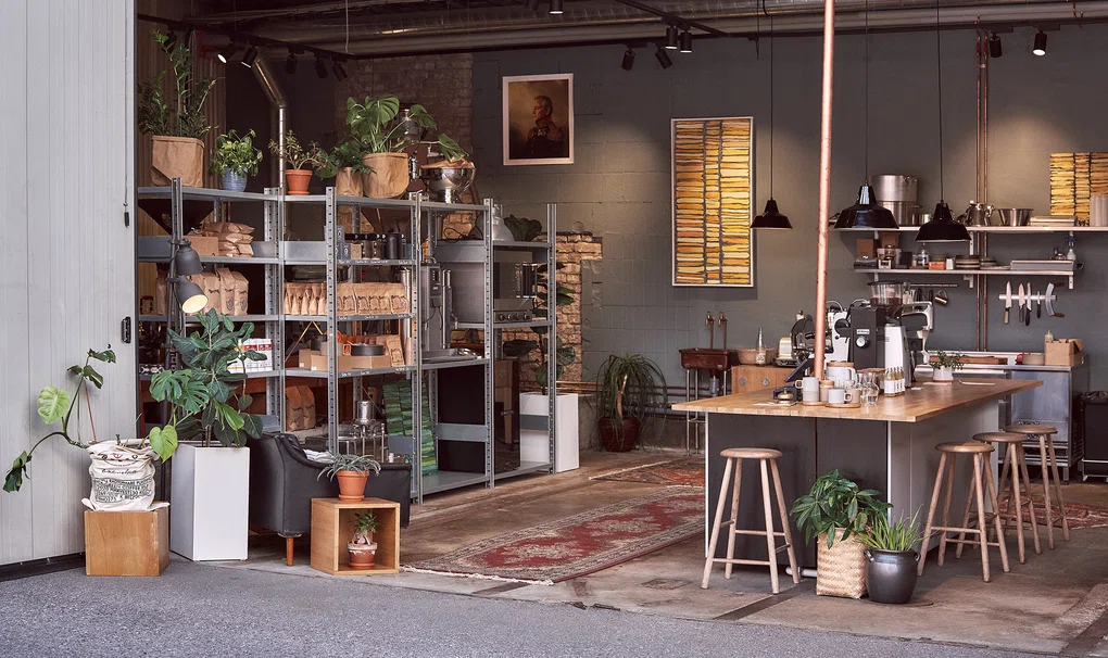 "alt": "Cafés in Stockholm. Coffe shop and café Stockholm Roast, in the former meatpacking district in Stockholm.",