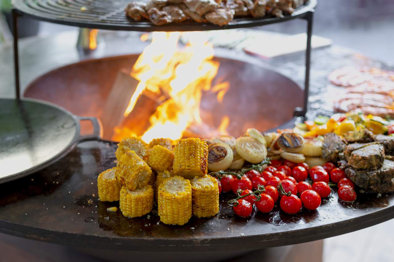 "alt": "Restaurants in the Stockholm archipelago. Barbecued food at Röda Villan, a restaurant and petanque bar at Fjäderholmarna in Stockholm.",