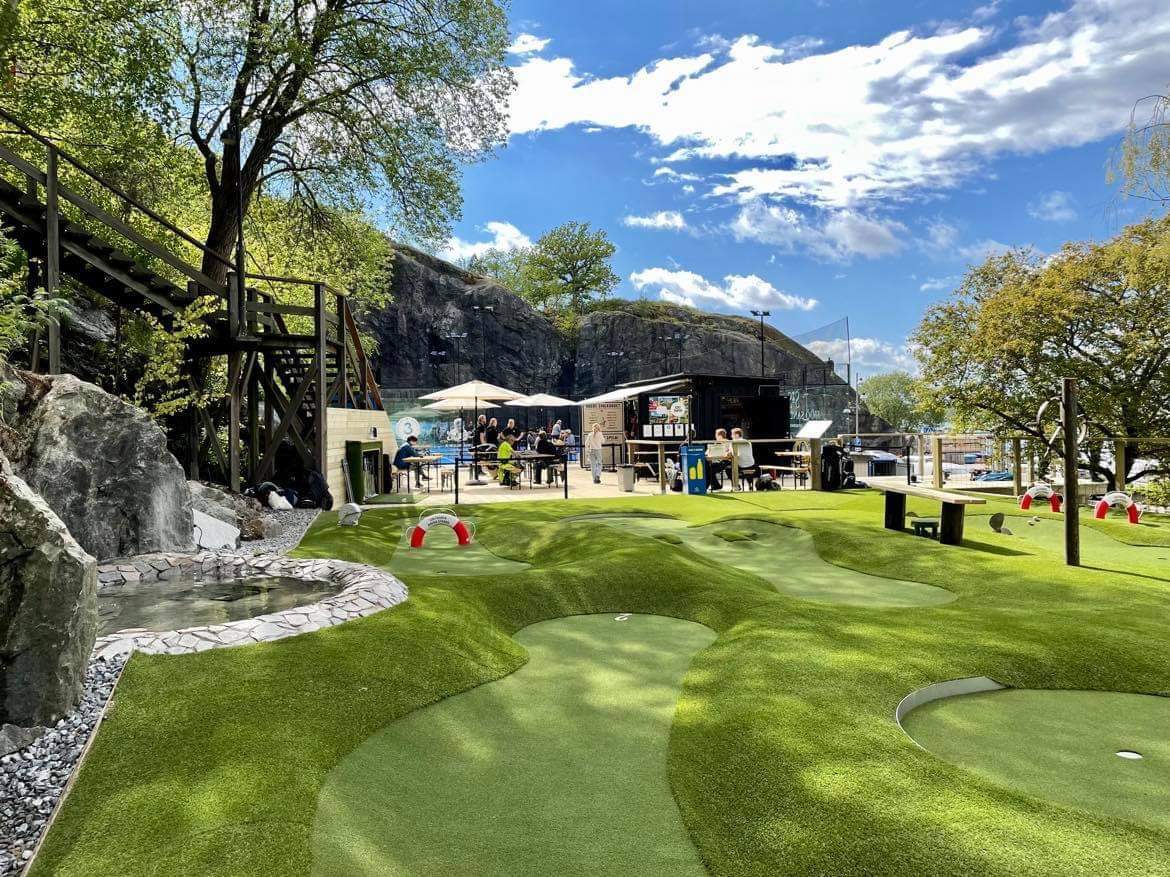 "embeddedTextCaption": "Activities in Stockholm. The minature golf course att Golfbaren in Nacka Strand.",