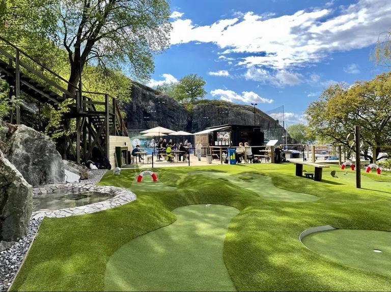 "alt": "Activities in Stockholm. The minature golf course att Golfbaren in Nacka Strand.",