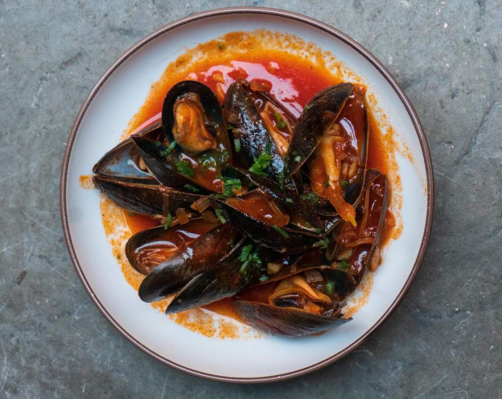 "alt": "Restaurants in Stockholm. A plate of mussels at La Barra, a Spanish restaurant in Stockholm",