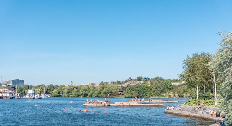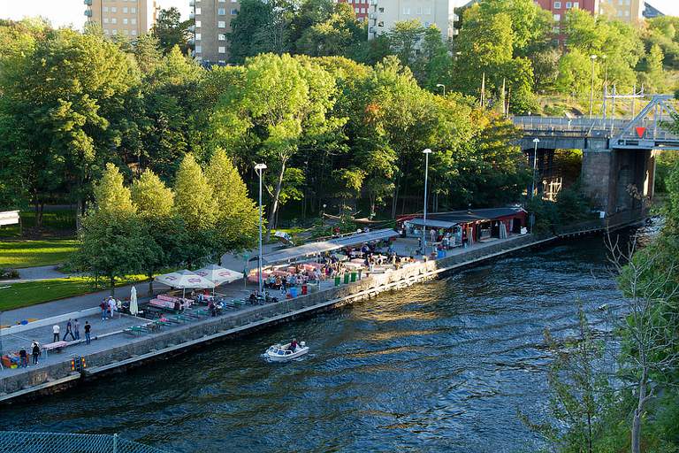 "alt": "Activities in Stockholm. A view of Boule and Berså under the Danvik bridge.",