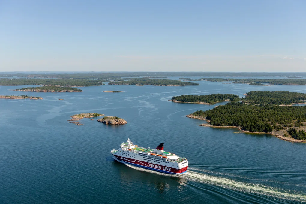 "alt": "Viking Line i skärgården"
