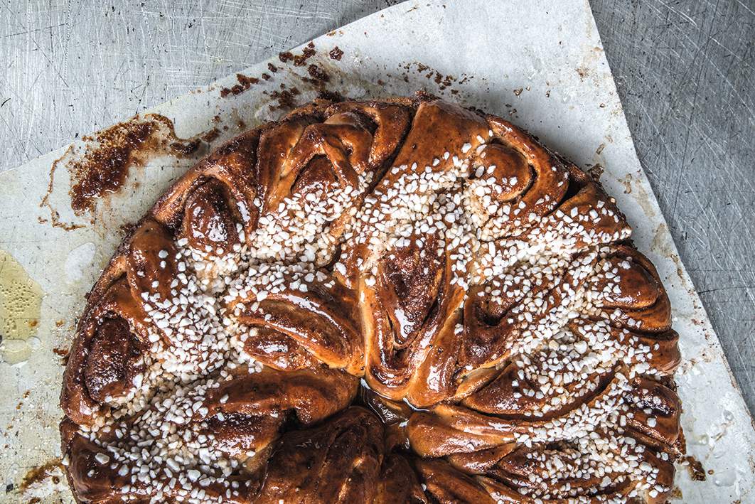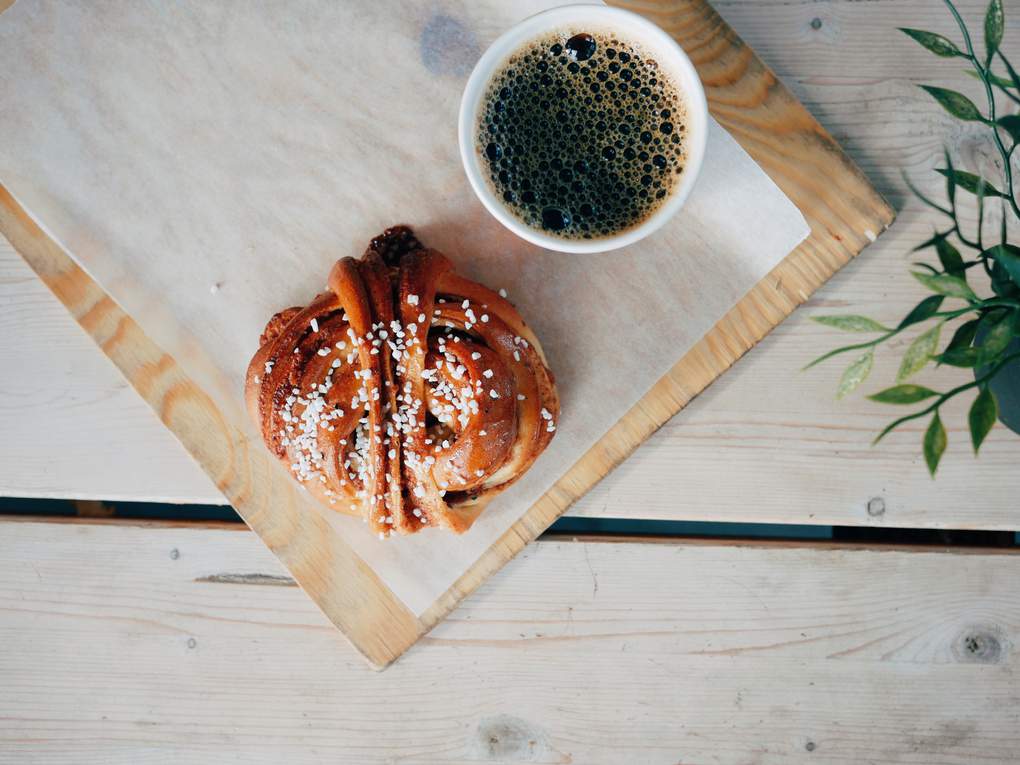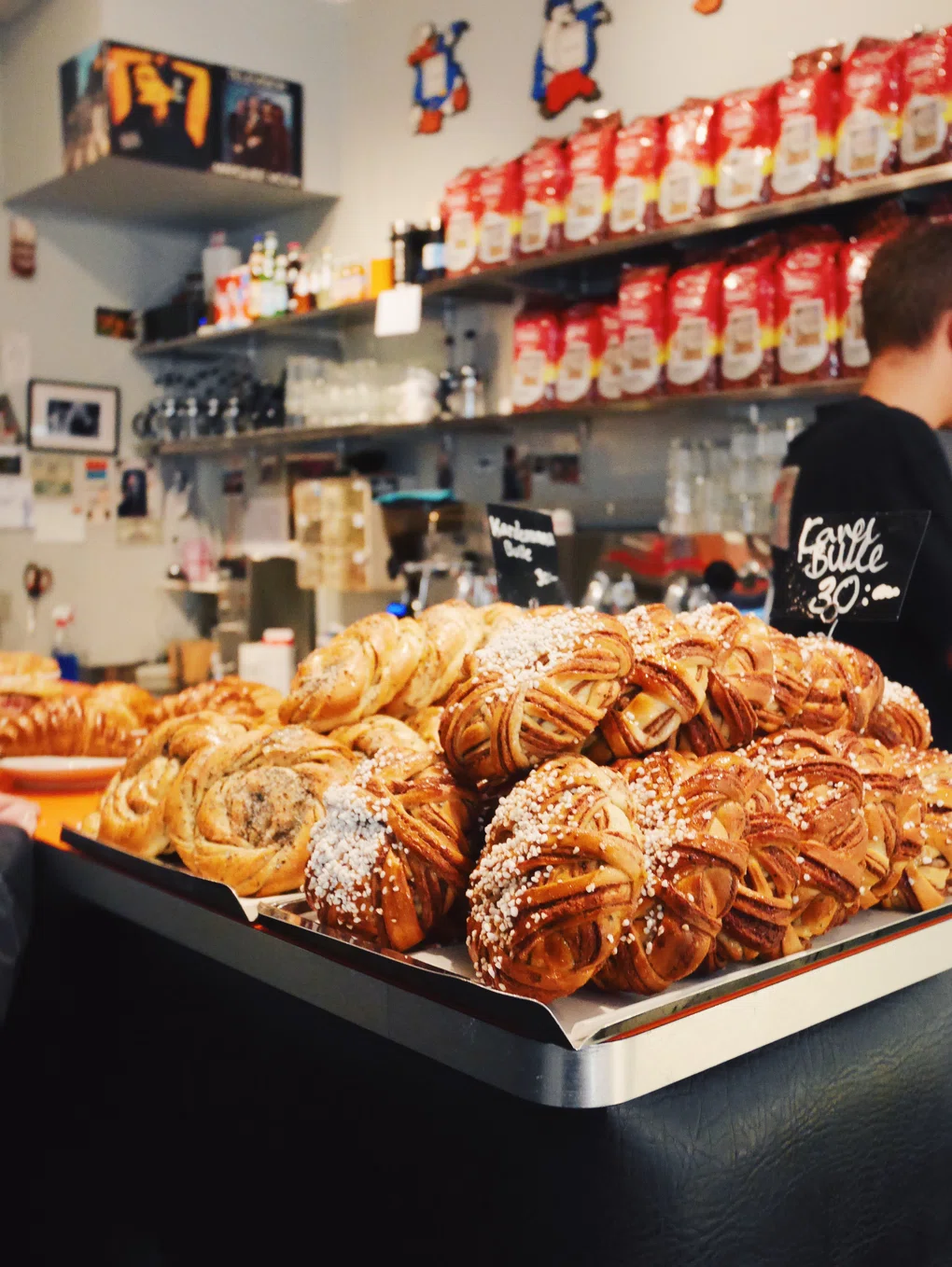 "alt": "Coffee in Stockholm. Il Caffé on Kungsholmen. Cinnamon buns on a tray.",