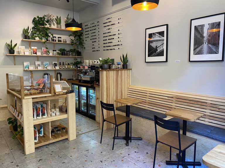 "alt": "Cafés in Stockholm. Volca Coffee Roaster on Kungsholmen, interior.",