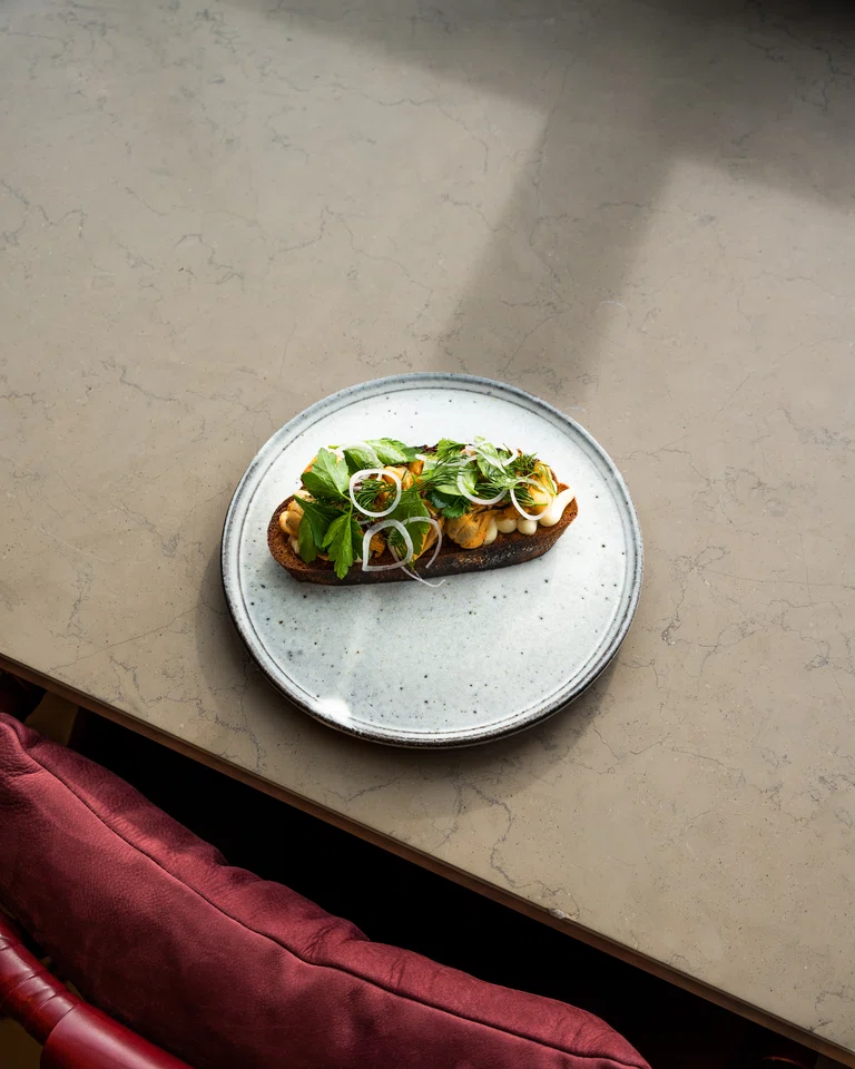 "alt": "A plate of food at Freyja. Freyja openend in March 2023 and is Stureplansgruppens first restaurant on Södermalm in Stockholm.",