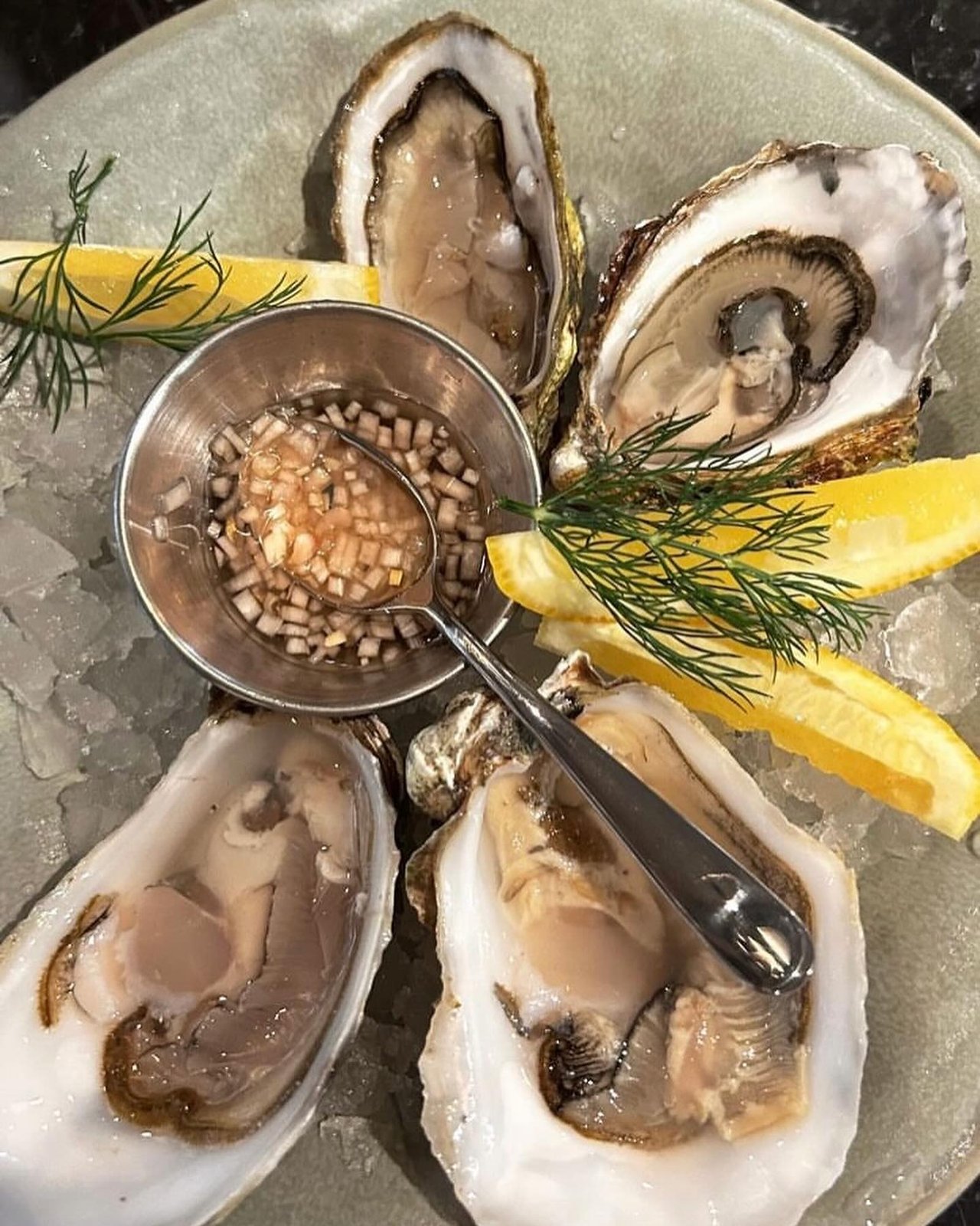 "alt": "Restaurants in Stockholm. A plate of oysters, lemon and chopped onion salsa at Monrads on Östermalm.",