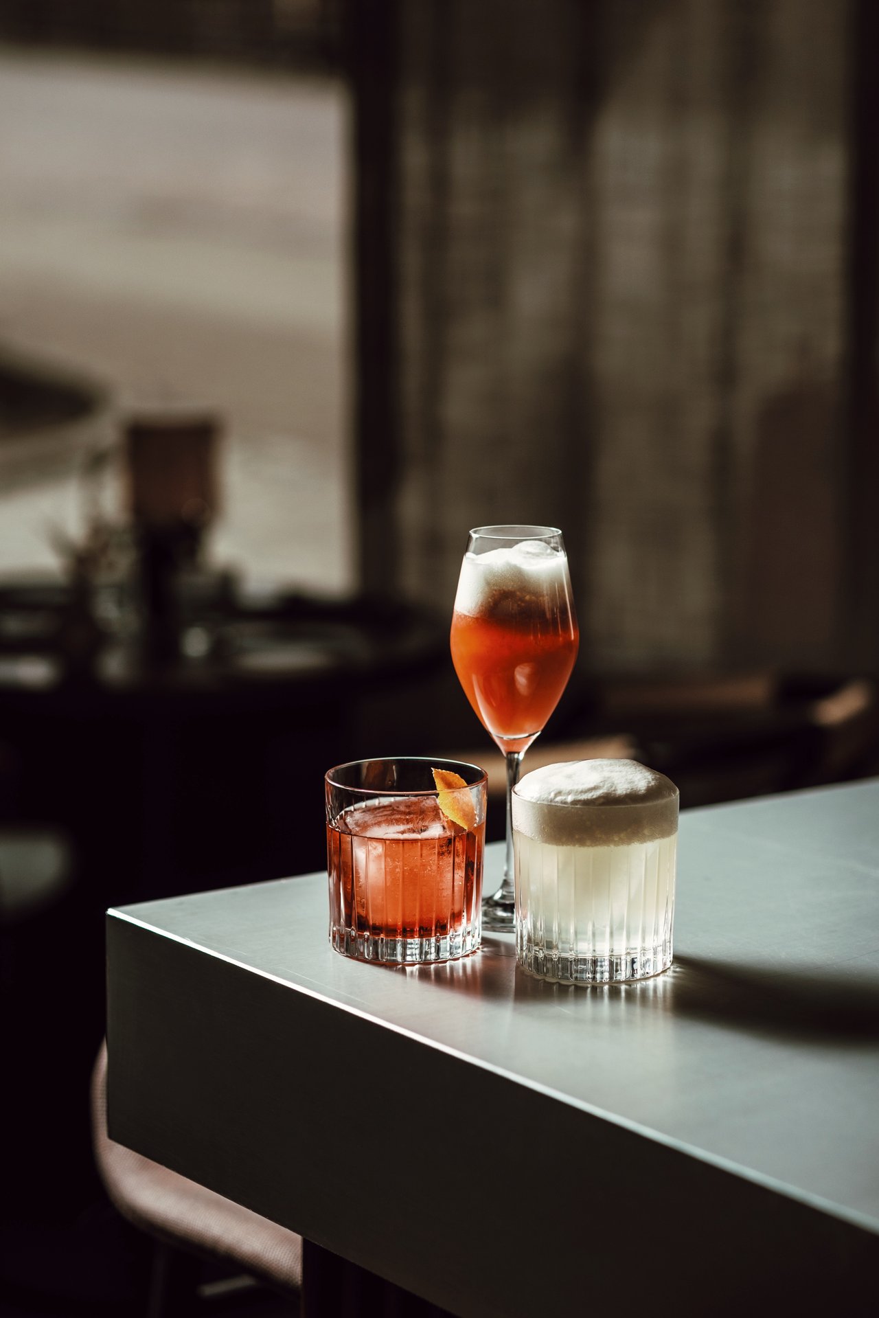 "alt": "Close up photo of three cocktails on the counter at NÒR Södermalm.",