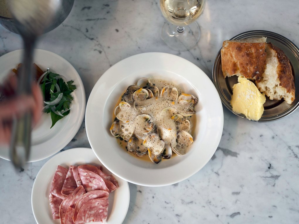 "embeddedTextCaption": "A table with several platse of food and glasses with various drinks at Pelago, a summer restaurant in Stockholm.",