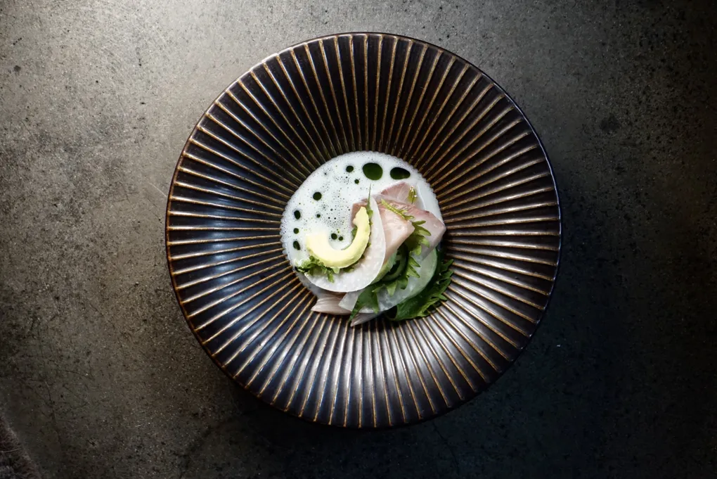 "embeddedTextCaption": "A man is holding a plate of food over a teble set for dinner at restaurant Parken in Stockholm.",