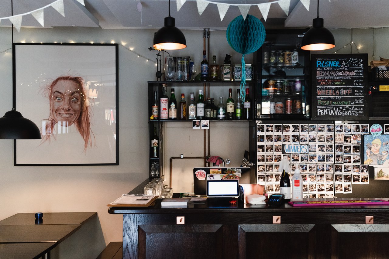 "alt": "Bars in Stockholm. The counter at Bar Kaja on Södermalm.",