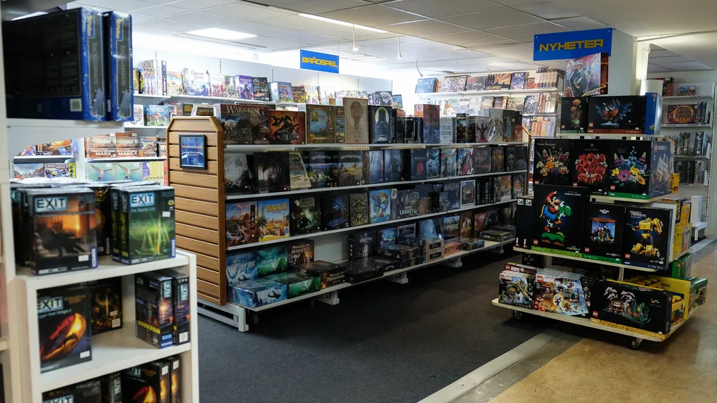 "embeddedTextCaption": "Shopping in Stockholm. Alphaspel, a game store in southern Stockholm. Shelves at the store are stocked with board games.",