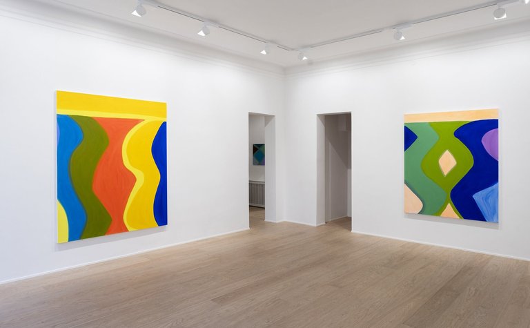 "embeddedTextCaption": "gallery with colourful paintings",