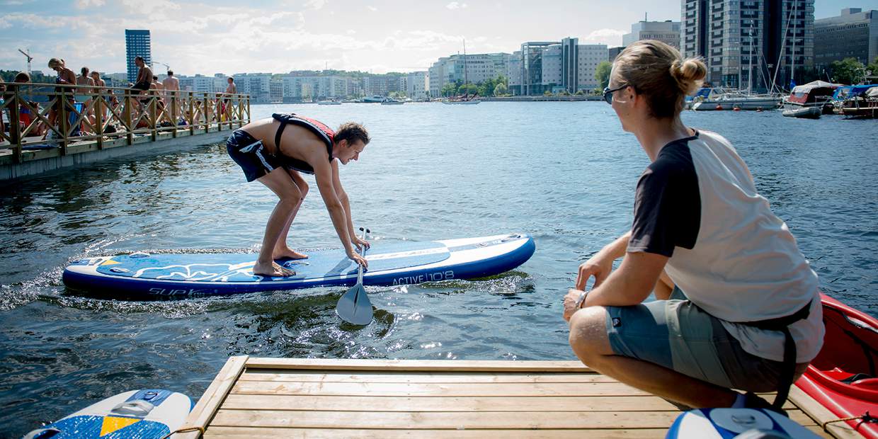 "text": "<p>Surfbussen offers SUP-rentals (stand up paddleboard) and accompanied paddling. Starting in the calm waters of Karlbergssjön, you can easily paddle your way to the City Hall in 30 minutes. Or, join the kite school that certifies students with the International Kiteboarding Organization. They also offer electric hydrofoil.</p>",