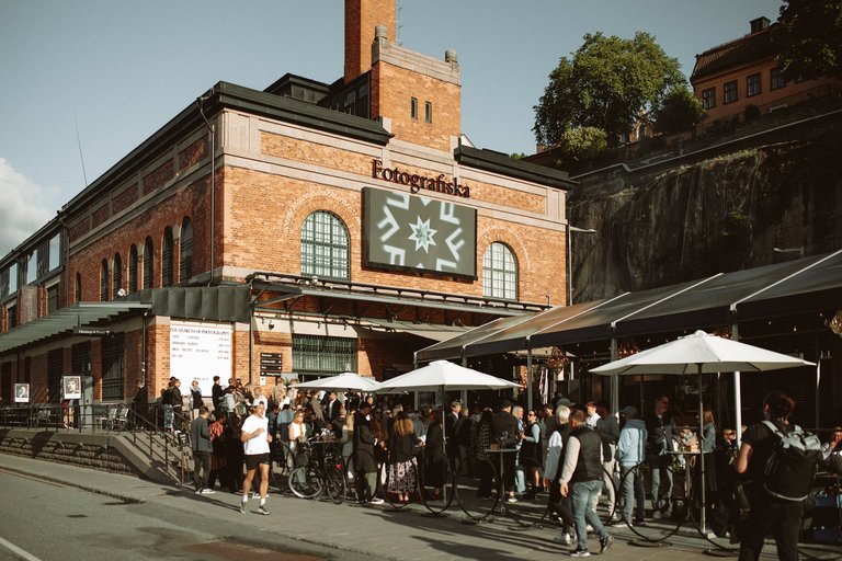 "embeddedTextCaption": "The museum for modern photography, Fotografiska in Stockholm. Summer view of the brick building from the outside, with guests crowding on the outdoor terrace.",