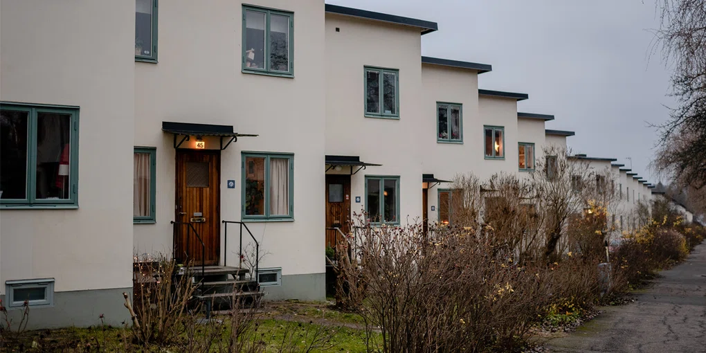 "alt": "The Per Albin Houses on Ålstensgatan in Bromma.",